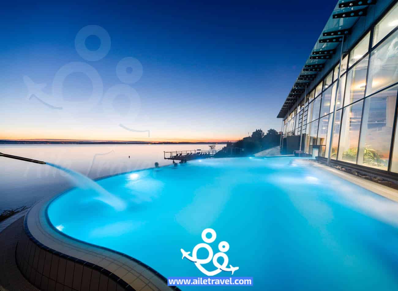 تغذي الحمامات بالينابيع الساخنة الطبيعية وتقدم مجموعة متنوعة من حمامات السباحة والساونا وعلاجات السبا.