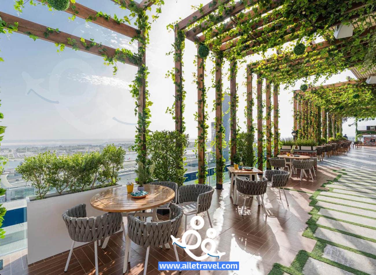 للحصول على تجربة فريدة حقًا، يمكن للضيوف زيارة التراس الموجود على سطح الفندق والاستمتاع بالمناظر الخلابة لأبو ظبي أثناء الاستمتاع بتناول وجبة أو مشروب.