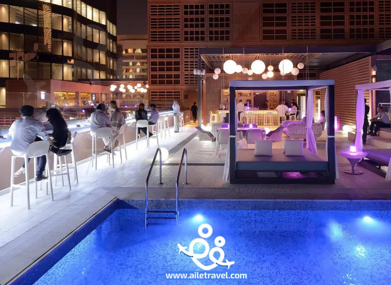 تمتع بالمناظر من التراس الموجود على السطح عند الإقامة في فندق كورت يارد باي ماريوت وورلد تريد سنتر أبو ظبي.