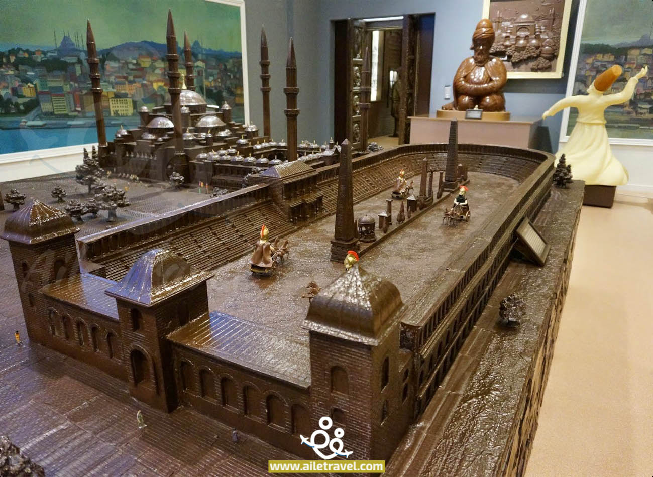 يحتوي المتحف على مجموعة رائعة من التماثيل والمجسمات المصنوعة بالكامل من الشوكولا، والتي تشمل نسخاً من معالم إسطنبول الشهيرة، وشخصيات تاريخية وفنية.
