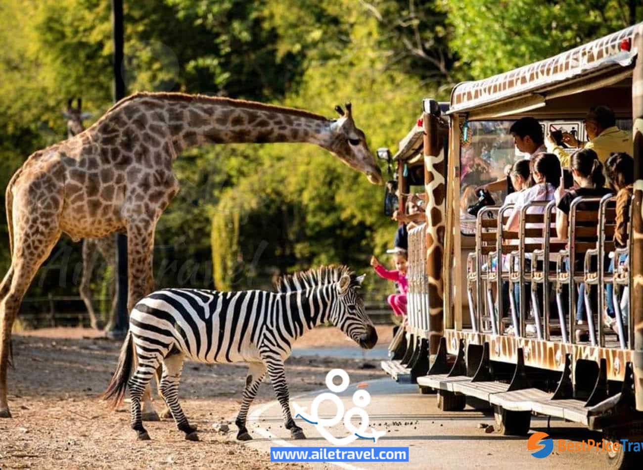 تتميز رحلة السفاري بركوب الترام عبر حديقة الحيوانات ، بالإضافة إلى “نزهة سفاري” حيث يمكنك الاقتراب والتعرف على بعض الحيوانات.