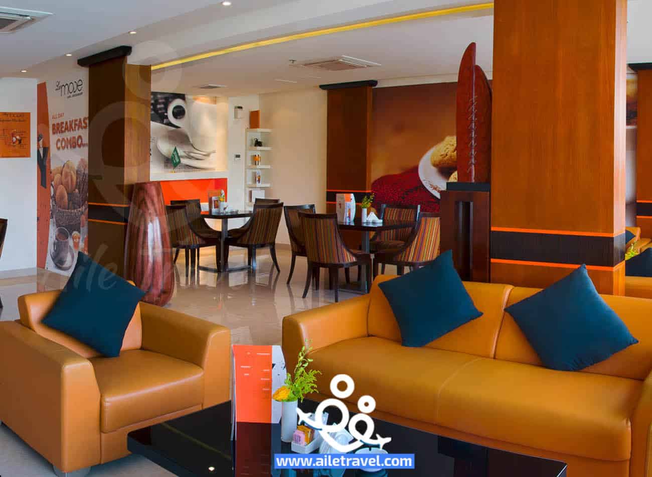 بالإضافة إلى المطعم ، يوجد أيضًا مقهى صالة يقدم المشروبات والوجبات الخفيفة.