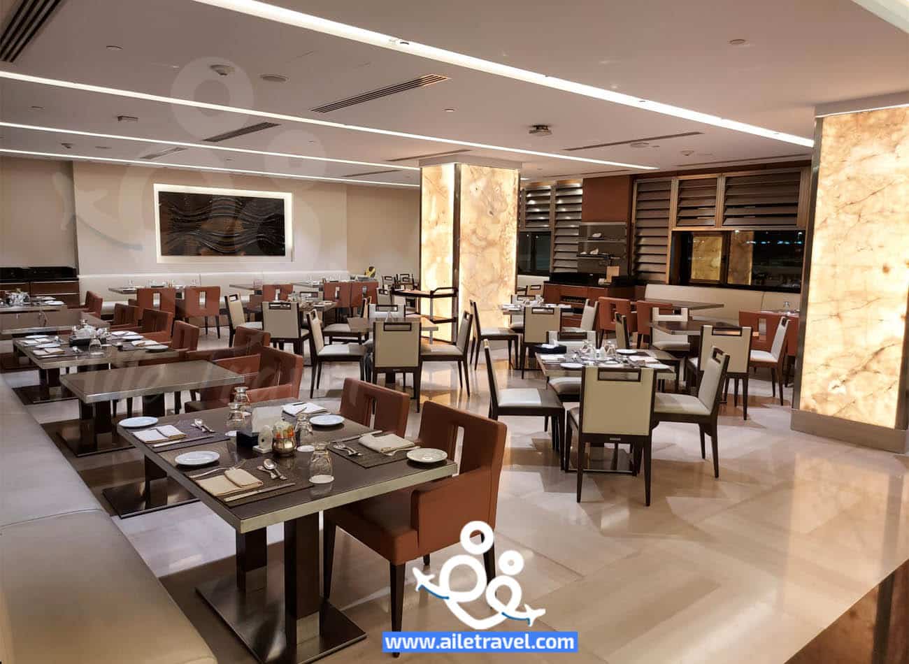 يمكن للضيوف الاستمتاع بمجموعة متنوعة من الأطباق العالمية في مطعم الفندق الرئيسي.