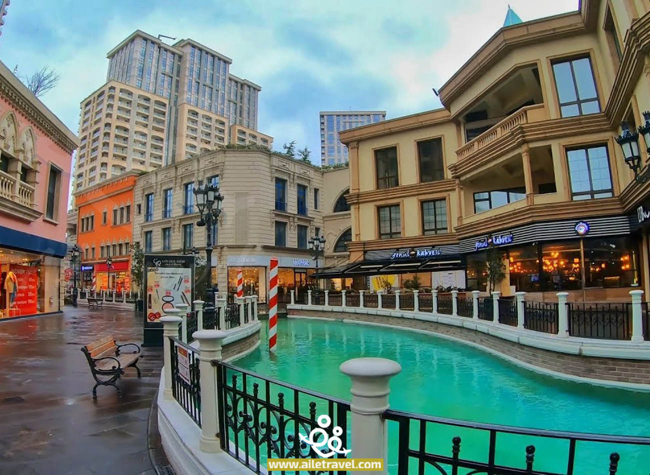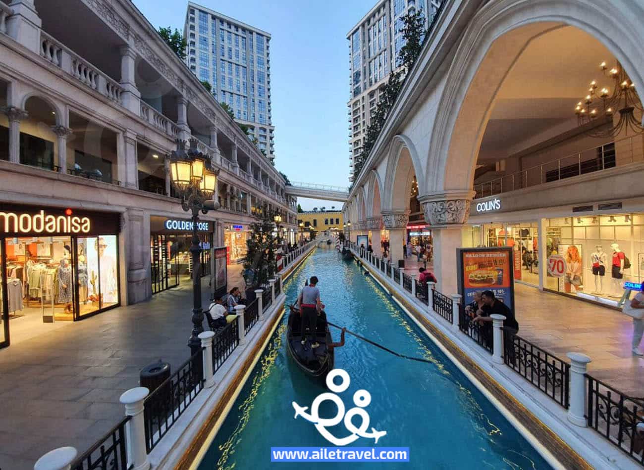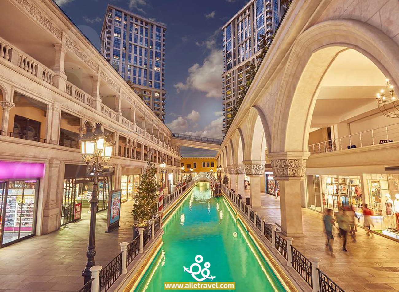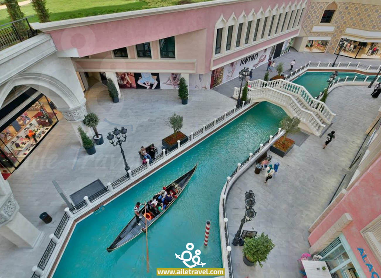 يمكنك استكشاف التصميم الفريد للمول الذي يجمع بين الطرازين الإيطالي والتركي، والتمتع بالمناظر الخلابة والجسور الرائعة.
