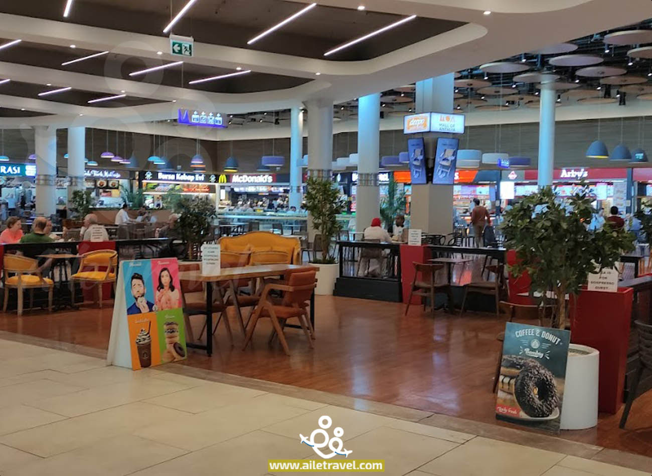 يوفر المول تشكيلة واسعة من المطاعم والمقاهي التي تُناسب جميع الأذواق. من مطاعم الوجبات السريعة إلى المطاعم الراقية التي تقدّم أطباقاً من المأكولات العالمية والتركية، يمكن للزوار الاستمتاع بتجربة طعام لا تُنسى.